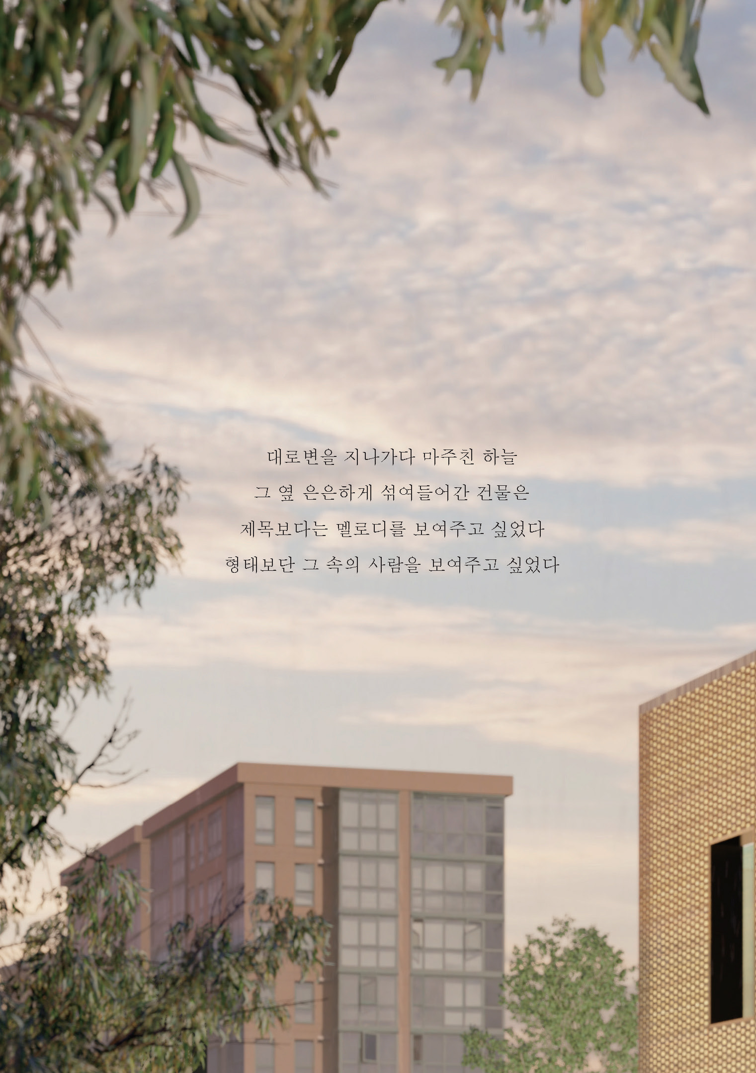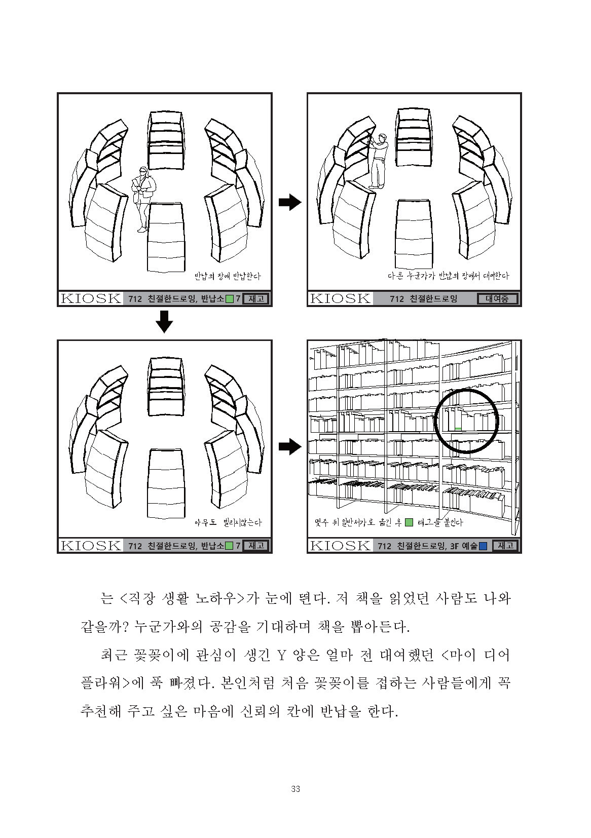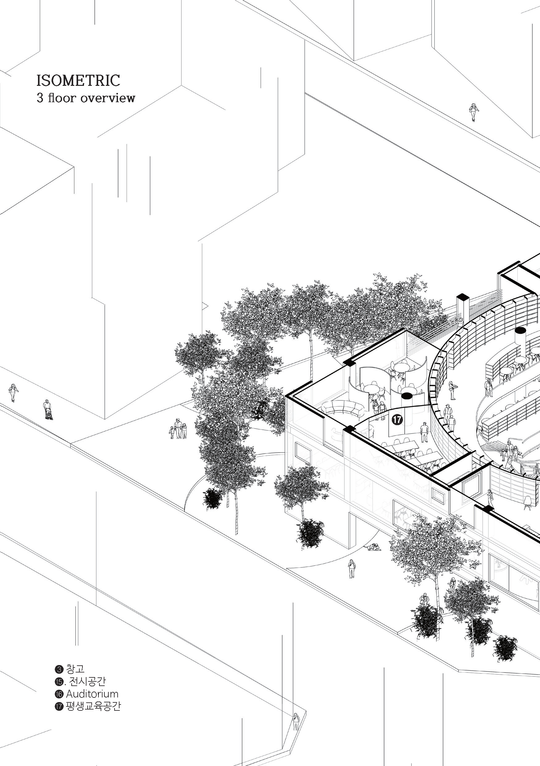 전형적인 서가 배치인 <듀이 10진 분류법>에 의문을 품고, 경계가 뚜렷하지 않은 서가 배치에서 출발했다. 우리의 목표는 도서관은 "연속적인 도서의 경험"을 제공해 주어야 하고, "책으로부터 다양한 활동들"이 파생되고자 했다. 경계를 가지지 않는 색을 대입해서 책을 분류하고, 각 분류에서 파생된 활동 공간을 배치하여 독서 그 이상으로 경험되길 바랐다.